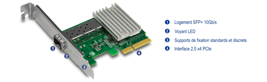 - Convertit un logement PCIe en un logement SFP+ 10G