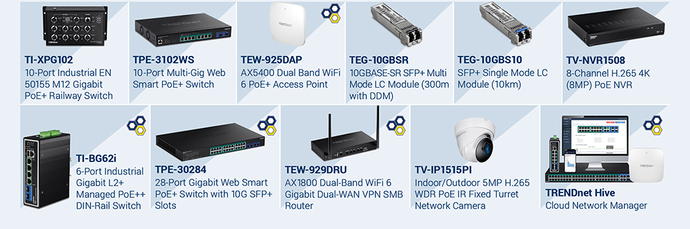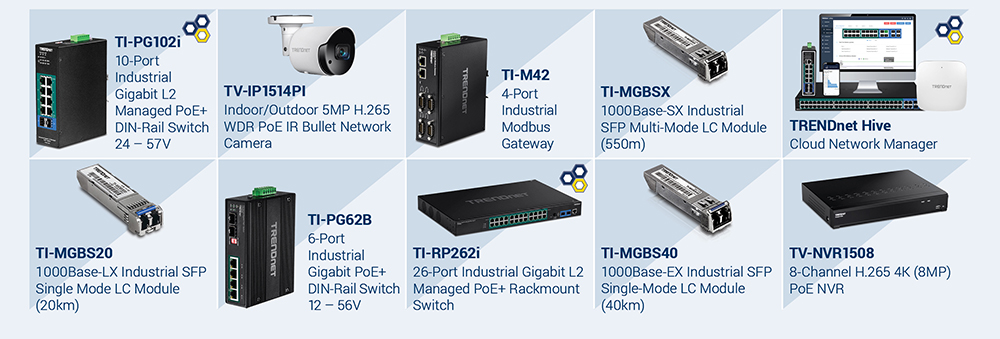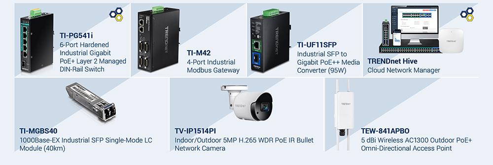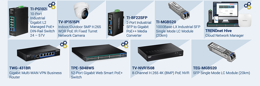 Select TRENDnet products in this application are remotely manageable with TRENDnet Hive, an easy-to-use cloud network manager. Save on time and costs by centralizing network management and monitoring, and getting better overall visibility of network devices. Key features include advanced traffic statistics, troubleshooting tools, and device hardware monitoring, which are all part of a bigger intelligent transportation system.
