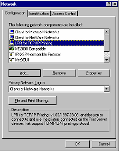 Step 5 From the list highlight LPR for TCP/IP and click on Properties.