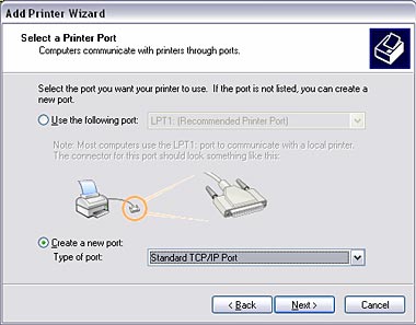 Step 3 Select Create a New Port and select Standard TCP/IP port. Click Next.