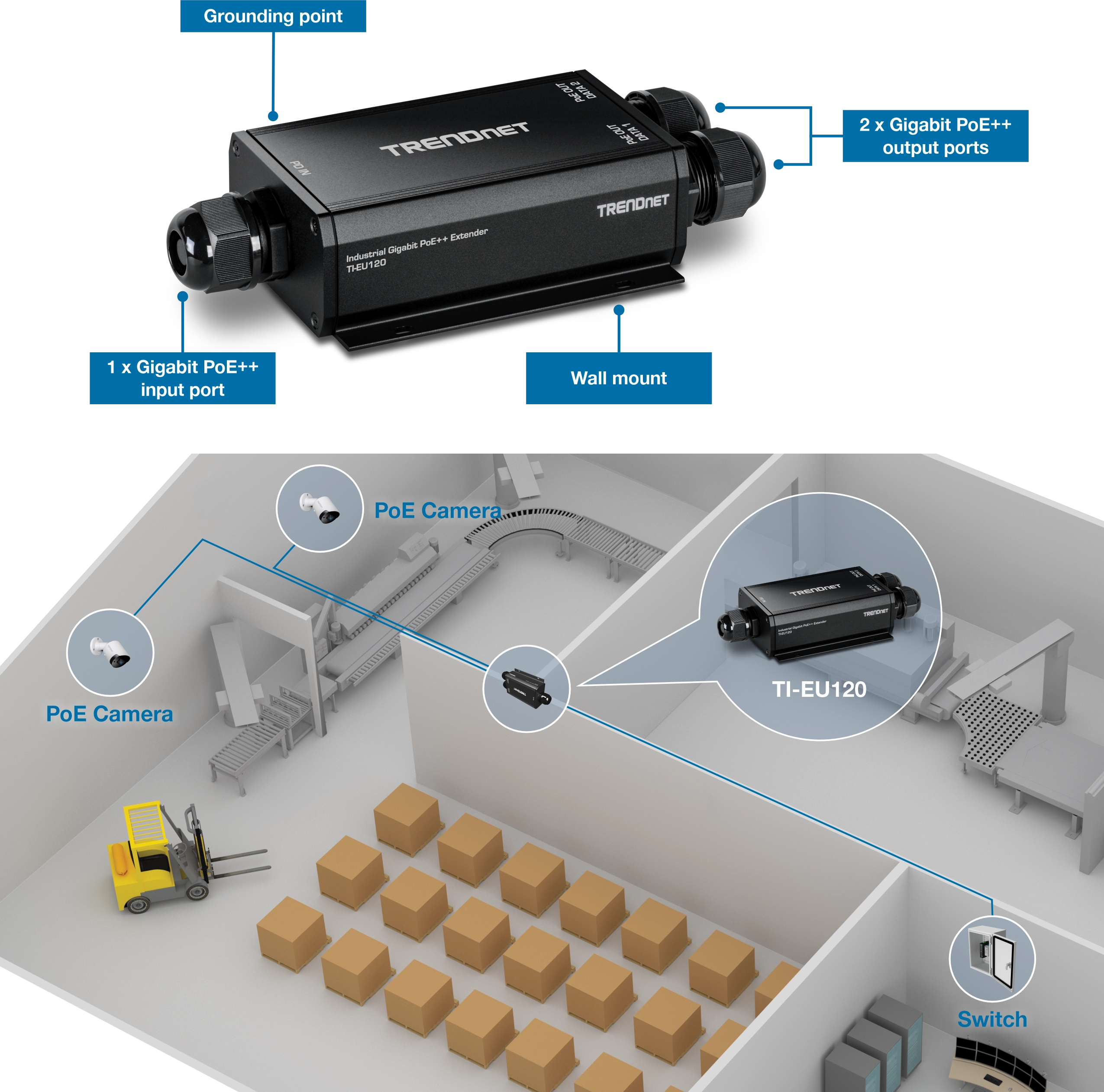 - Extends 100m for a total distance of up to 200m (656 ft.) for PoE and non-PoE devices