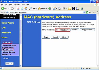 The MAC Address can be found on a label on the bottom of the Router. You can alternately find it by doing the following:
