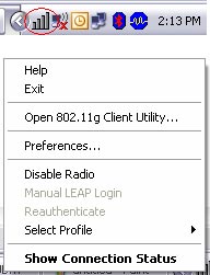 Open the utility by right clicking on the icon at the bottom right hand side of the screen and going to Open 802.11g Client utility.