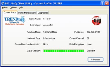 If you did not have encryption enabled it will Switch over to the Current Status tab. If the connection was successful you will receive status bars for Signal Strength.