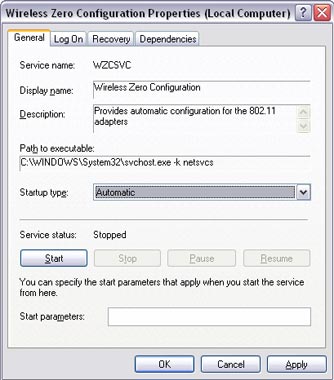 Why is the Wireless Networks tab missing under the properties of my wireless network connection?