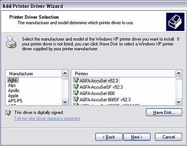 and browse to the printer drivers for your printer (floppy, CD, or downloaded).