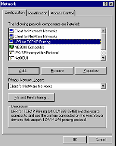 Step 5 From the list highlight LPR for TCP/IP and click on Properties.