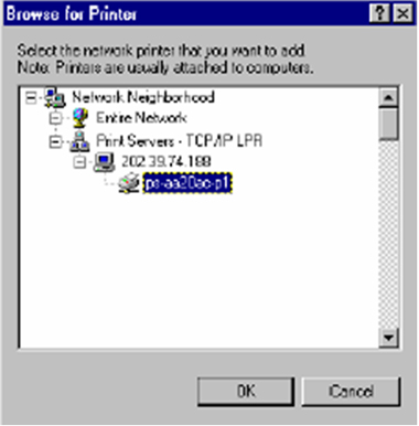 Highlight the Print Server and click on OK to return to the Add Printer Wizard.