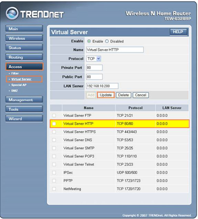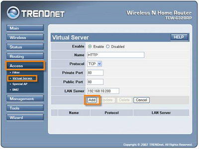 - Click on "Accesss" on the left hand side then click on "Virtual Server".