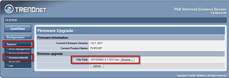 - Check the firmware version first. Click Browse to choose the firmware file. Once the firmware has been selected, click Update