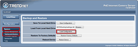 - Click the Load Configuration button
