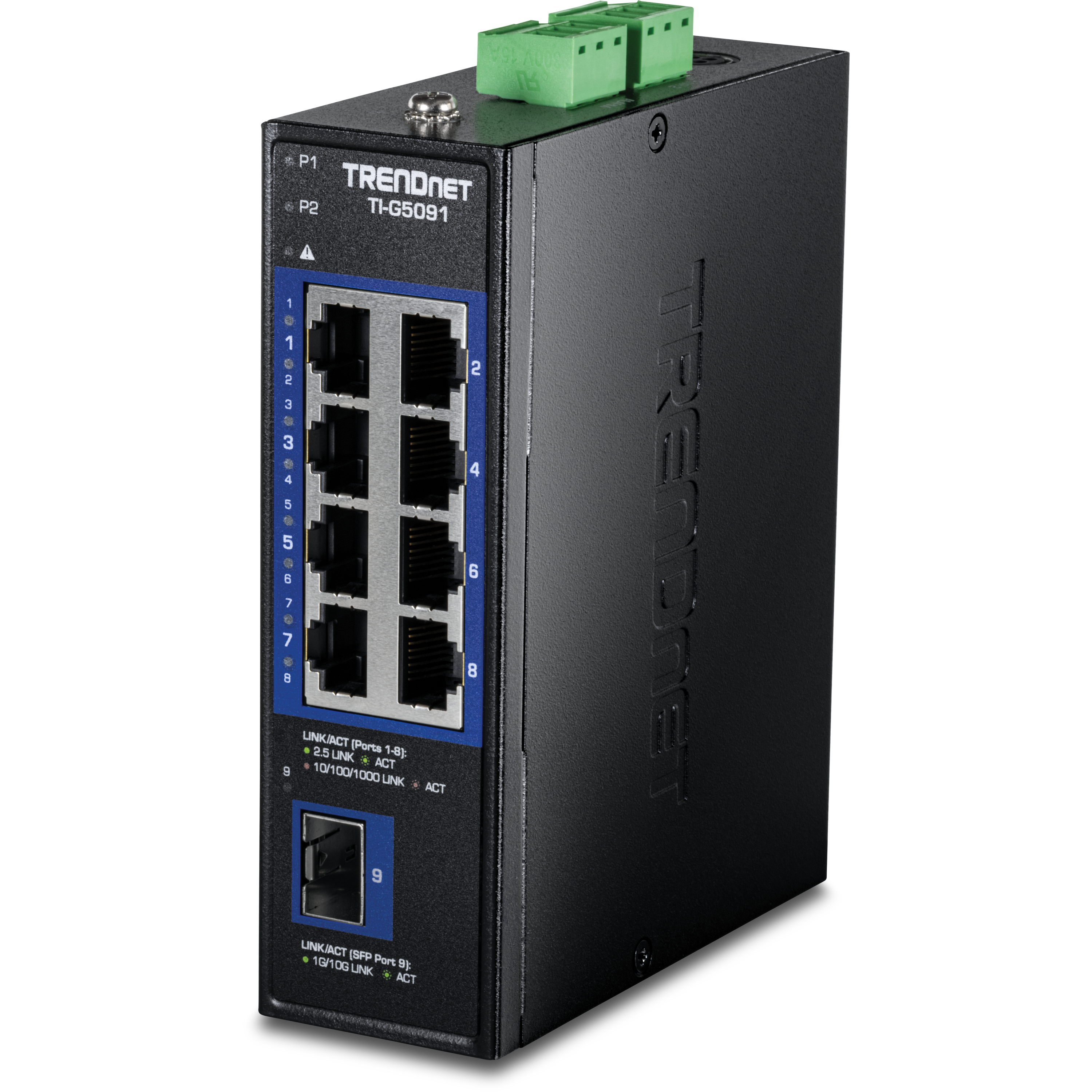 9-Port Industrial 2.5G DIN-Rail Switch with 10G SFP+ Port