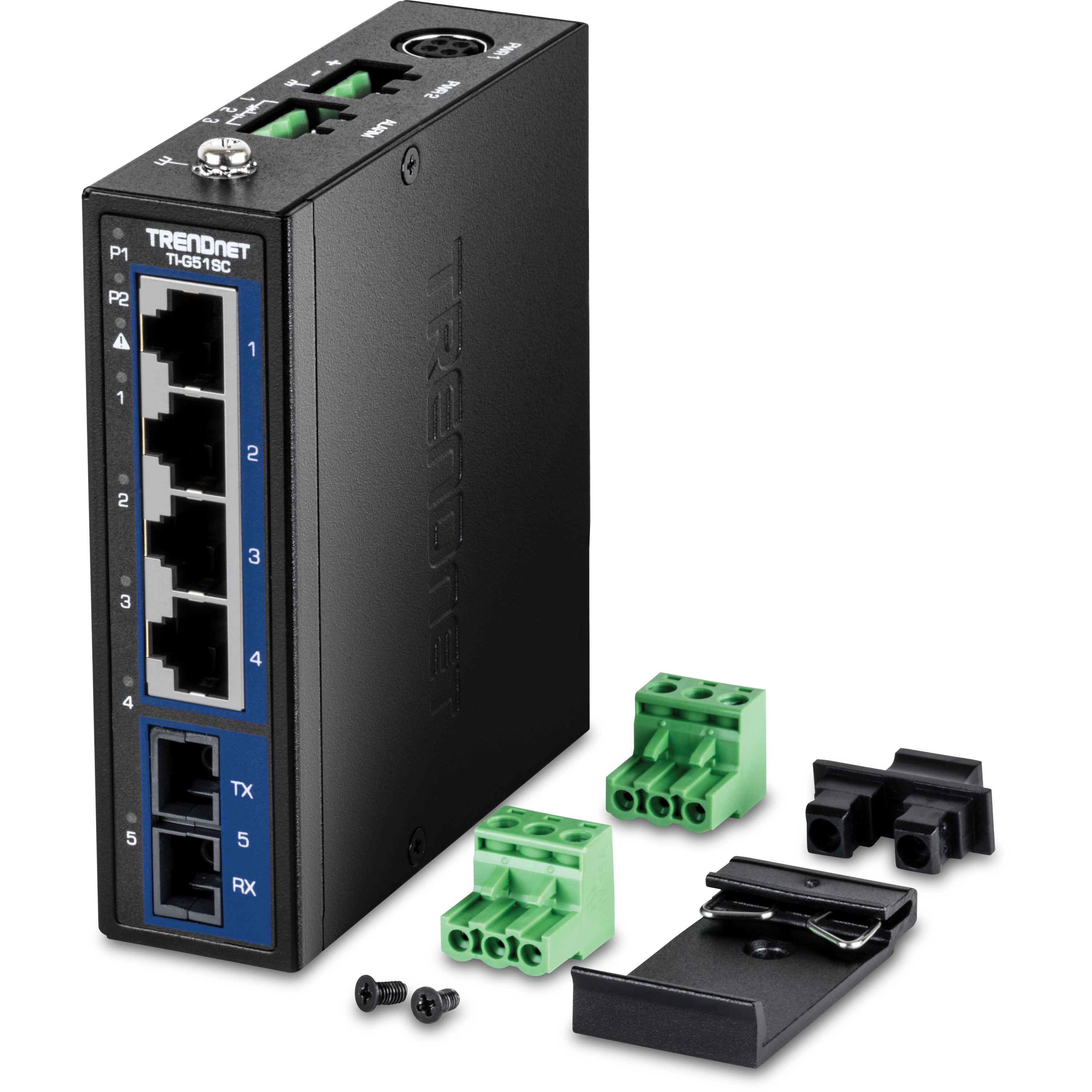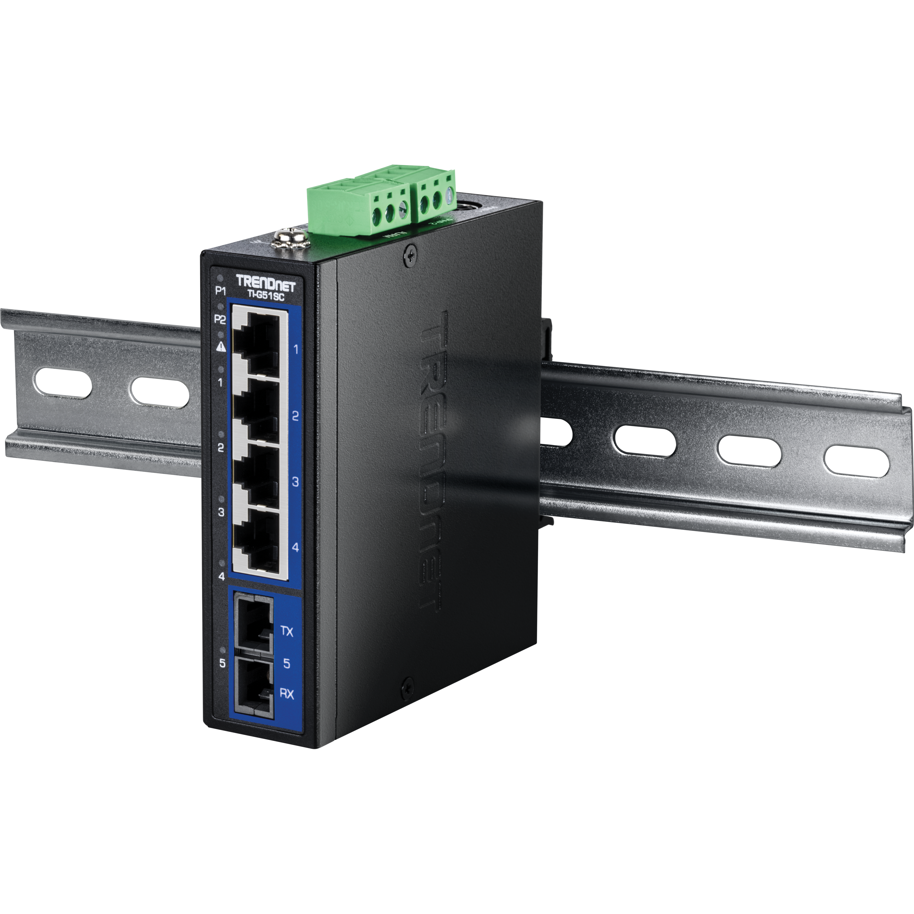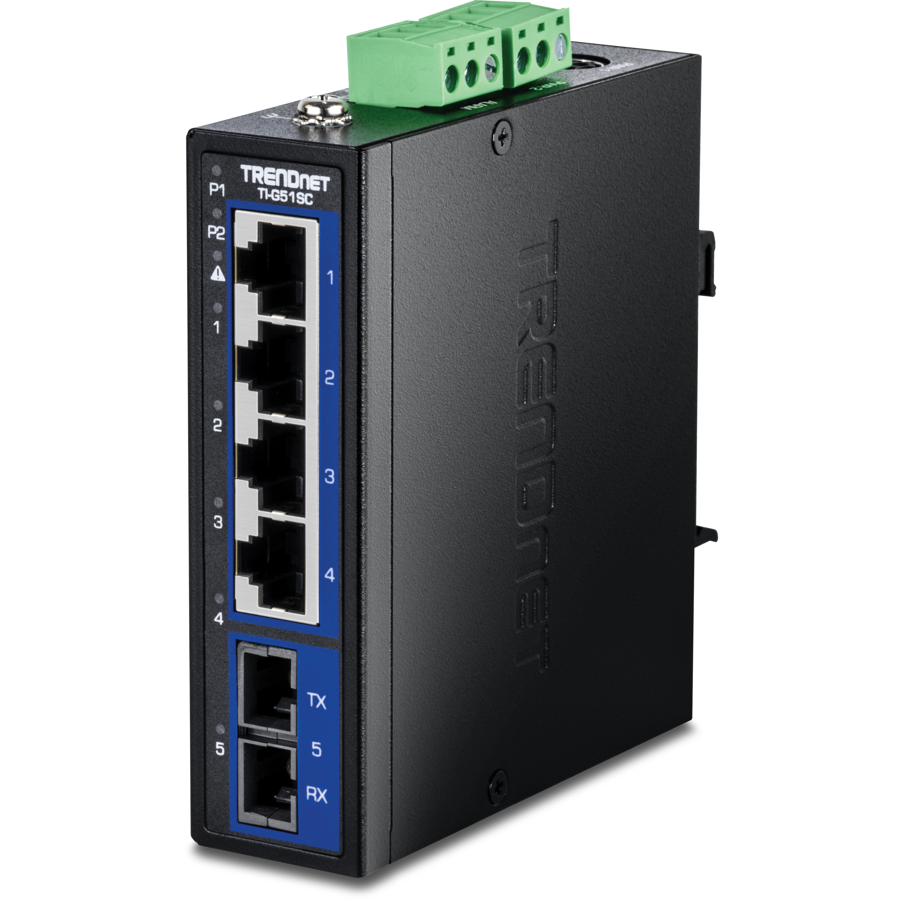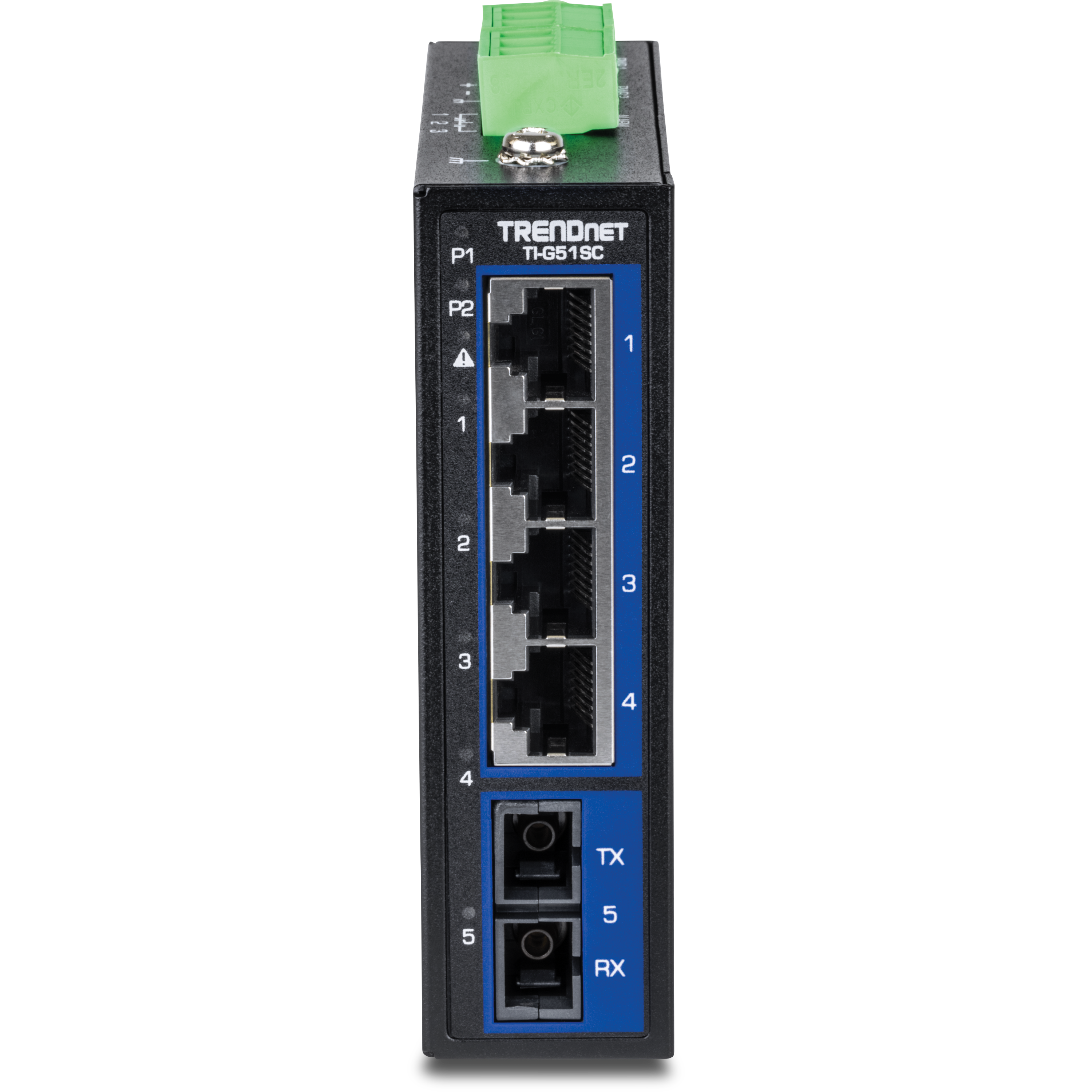 5-Port Industrial Gigabit DIN-Rail Switch with Multi-Mode SC Port