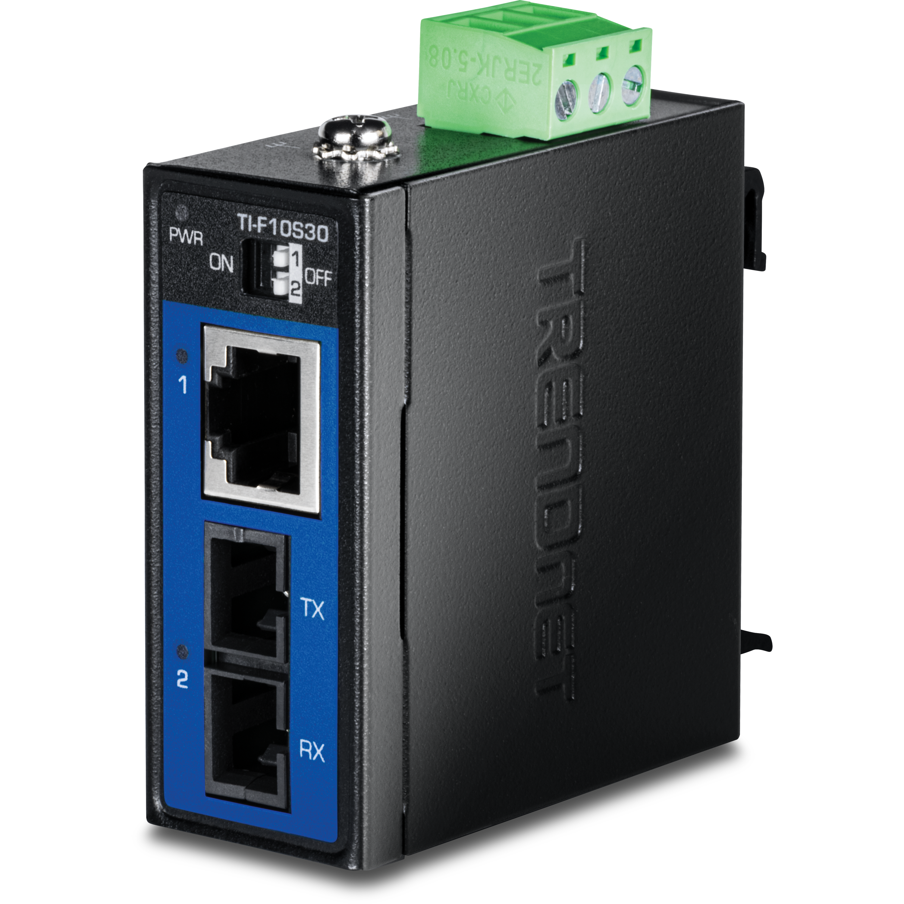 Industrial 100Base-FX Single-Mode SC Fiber Converter (30 km, 18.6 mi.)