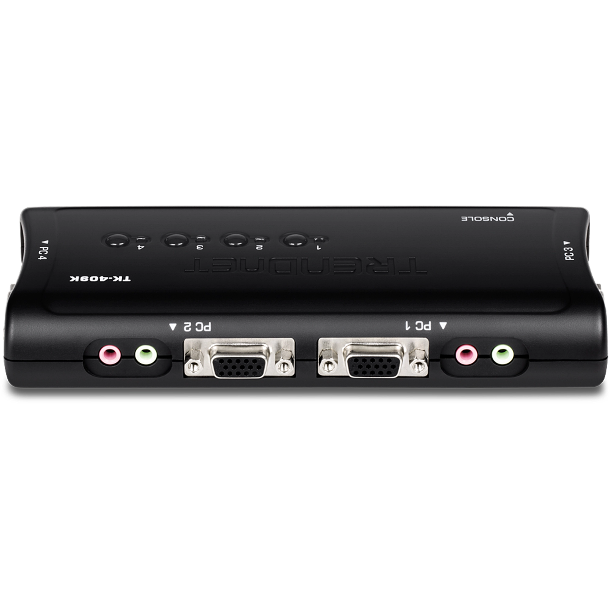 - 4-Port KVM switch with VGA, USB mouse and keyboard connections