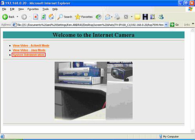 Step 1 Open your web browser and type the IP address of the TV- IP100 (C1) in the address bar. The default IP address is 192.168.0.20.