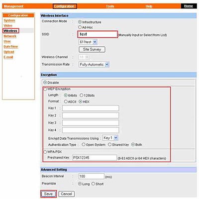 Step 4 Input the ESS-ID, Channel and if you have Encryption setup on our