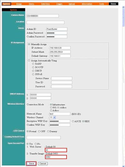 Example: Camera 1 is using the default ports 80 (TCP) and 8481 (TCP). Camera 2 must use a different port. For example: ports 81 (TCP) and 8482 (TCP).