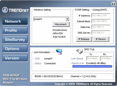 If you did not have encryption enabled it will Switch over to the Network tab. If the connection was successful you will receive signal level for Signal Strength.