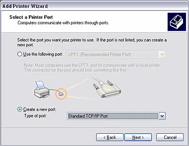 Step 3 Select Create a New Port and select Standard TCP/IP port. Click Next.