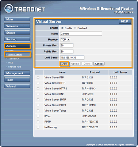 The following example shows how to forward the port in a TEW-432BRP Wireless Router.